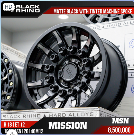Mâm Lốp Black Rhino Mission – Matte Black W/Machined Tinted Spokes 18″ Et: +12( Chính Hãng)