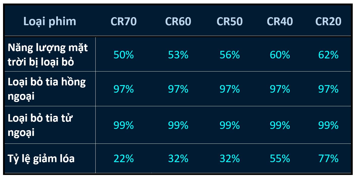 Ánh sáng màu ngăn đến 60% năng lượng mặt trời và lên đến 97% tia hồng ngoại tạo ra nhiệt để mang lại cảm giác thoải mái tối đa